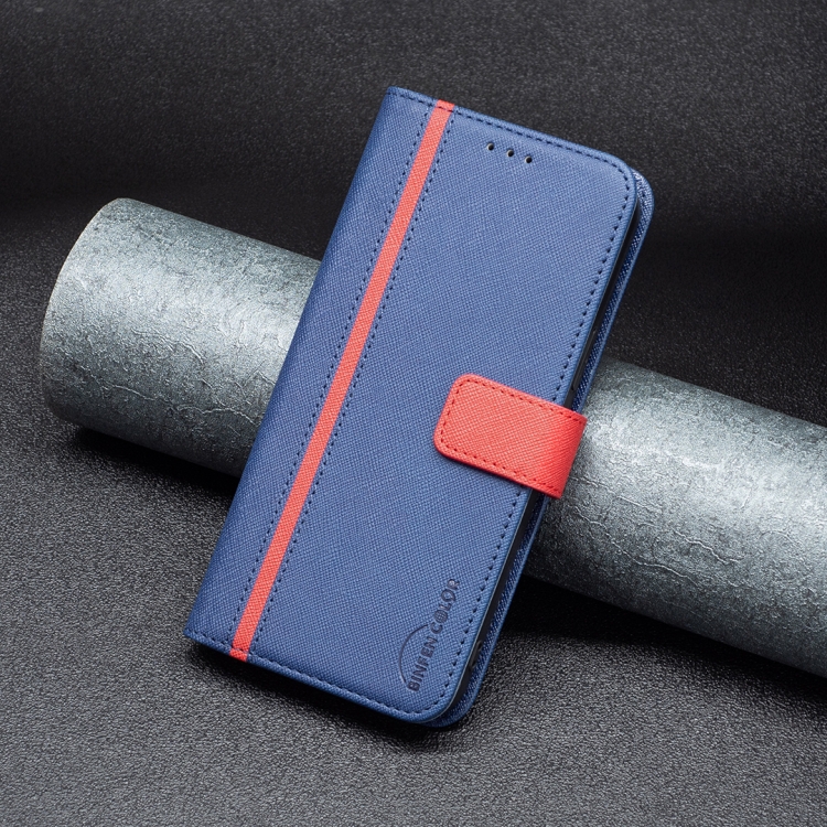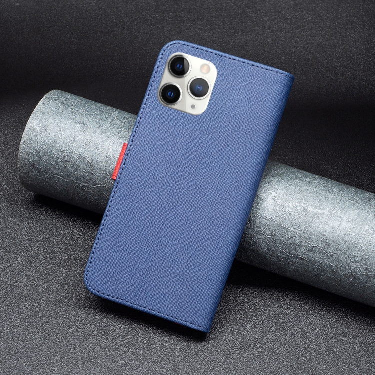 Funda para iPhone 11 Pro Max Bf13 Color Matching Cross Texture Leather Phone Case (Azul)