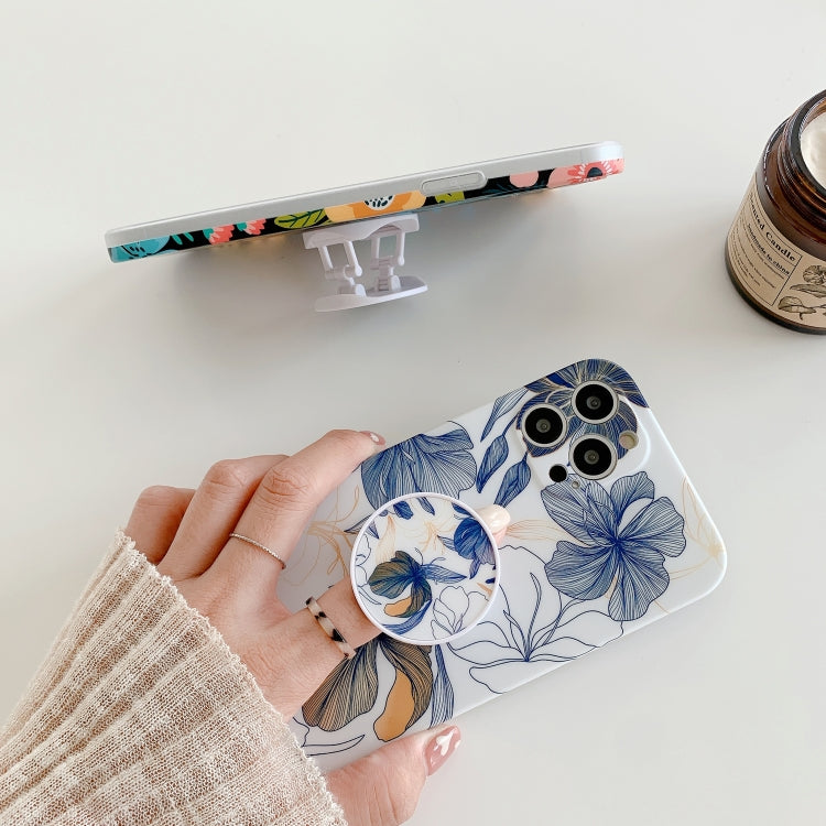 Funda TPU para iPhone 11 Pro Max con Soporte Plegable y Patrón Frosted Flores (Azul)