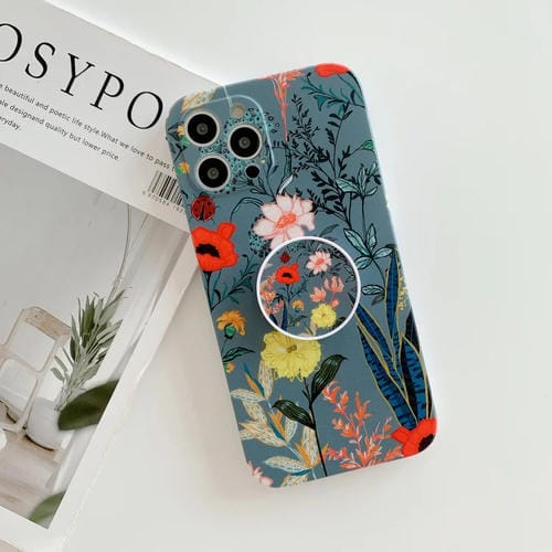Funda TPU iPhone 11 Pro Max Frosted Flores Patrón Imd con Soporte Plegable (Verde)