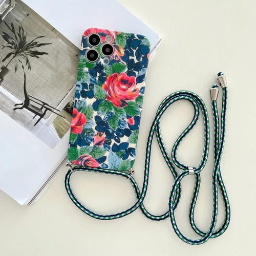 Funda de teléfono TPU para iPhone 11 Pro Max Lanyard Floral Pequeña (Verde)