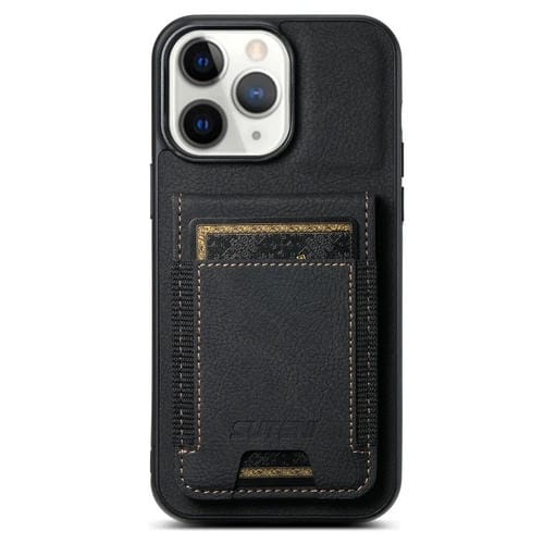 Funda para teléfono Suteni H03 para iPhone 11 Pro con soporte para tarjeta de cuero Litchi (Negro)