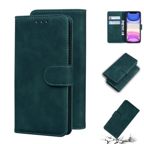 Funda para iPhone 11 Skin Feel Pure Color Flip Cuero Teléfono (Verde)