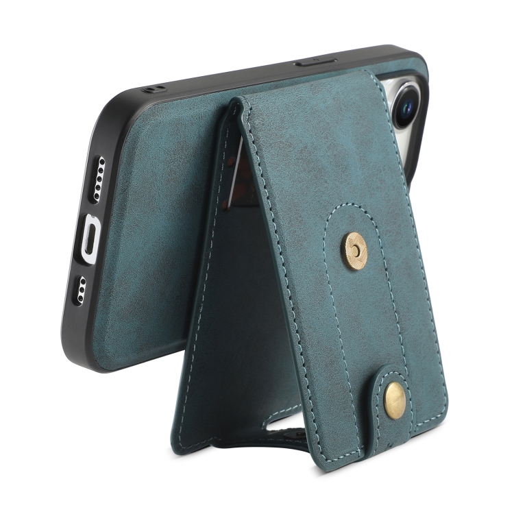 Estuche de Cuero Denior D14 Nk para iPhone 12/12 Pro con Tarjetero Magnético Magsafe Patrón Retro (Azul)