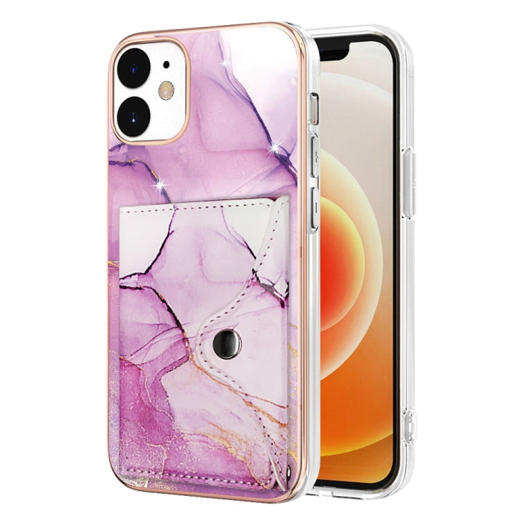 Estuche para teléfono iPhone 12/12 Pro con ranura para tarjeta Imd patrón de mármol (Oro Rosa, Morado)