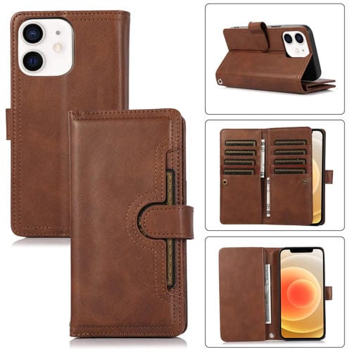 Funda de Cuero para Teléfono iPhone 12/12 Pro con Ranura para Tarjeta y Pulsera (Café)