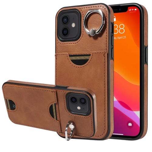 Funda para Teléfono iPhone 12/12 Pro Soporte Anillo Ranura Tarjeta Textura Pantorrilla (Marrón)
