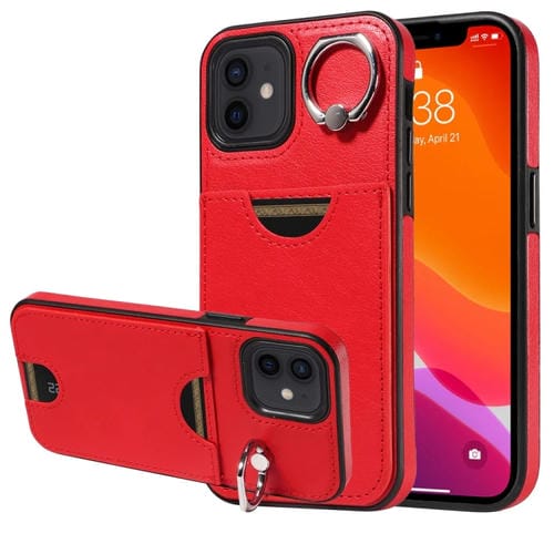 Funda para Teléfono iPhone 12/12 Pro con Soporte para Anillo y Ranura para Tarjeta (Rojo)