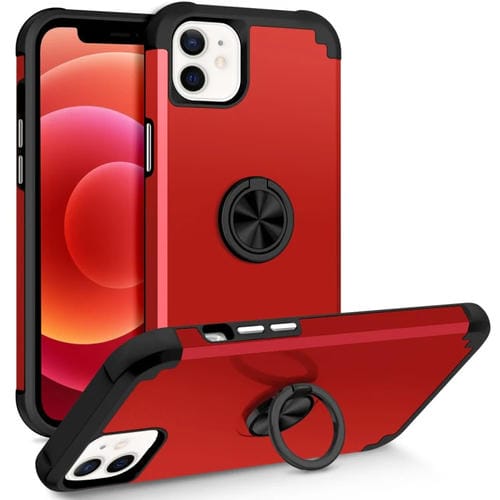 Funda Magnética para Teléfono iPhone 12/12 Pro L2 con Soporte de Anillo Giratorio (Rojo)
