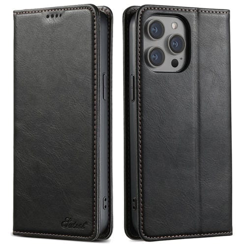 Funda de Cuero Suteni J02 para iPhone 12/12 Pro con Billetera de Cera de Aceite (Negro)