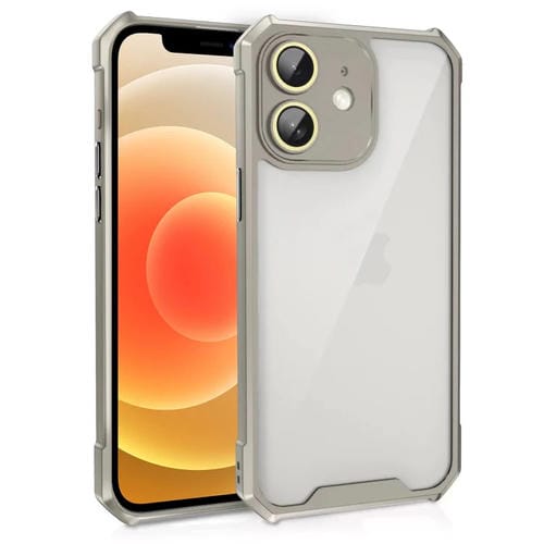 Estuche Acrílico para iPhone 12 a Prueba de Golpes con Película de Vidrio para Lentes (Gris)