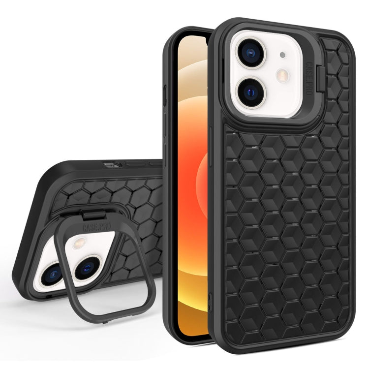 Estuche Magnético para Teléfono iPhone 12 con Soporte para Lente Radiante en Forma de Panal (Negro)