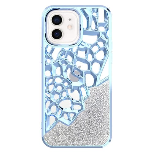 Estuche para Teléfono TPU Galvanizado iPhone 12 Disipación de Calor Hueco Estilo Diamante (Azul)