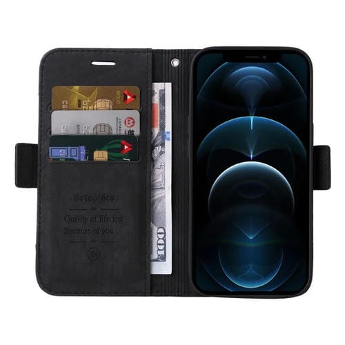 Estuche para Teléfono Betopnice iPhone 12 Mini Cuero con Hebilla de Doble Cara (Negro)