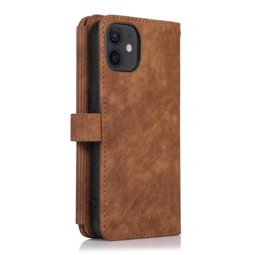 Funda para iPhone 12 Mini Dream 9-Card Wallet Zipper Bag Cuero (Marrón)
