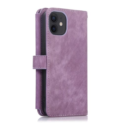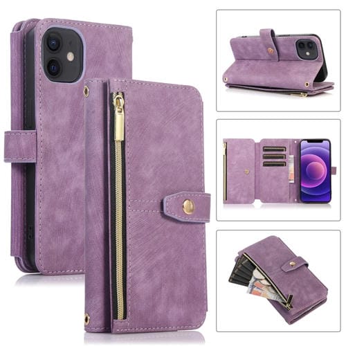 Funda de Cuero para Teléfono iPhone 12 Mini Dream 9-Card Wallet Zipper Bag (Púrpura)