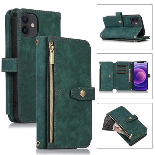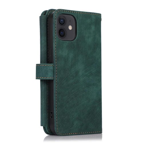 Funda de Cuero para iPhone 12 Mini Dream 9-Card Wallet Zipper Bag (Verde)