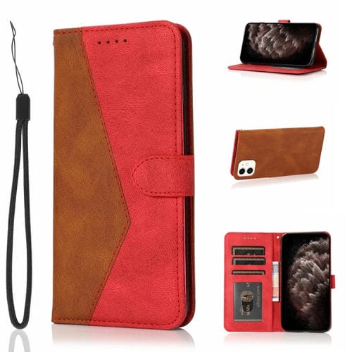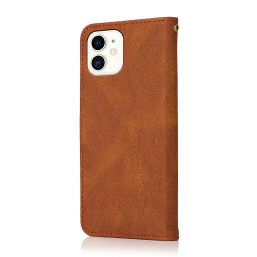 Estuche para teléfono iPhone 12 Mini Cuero con Costuras de Dos Colores (Marrón Rojo)