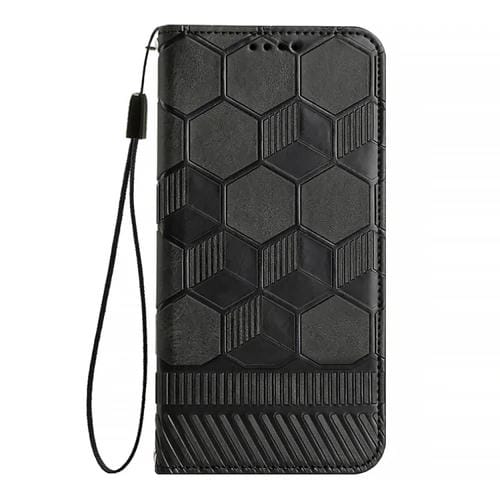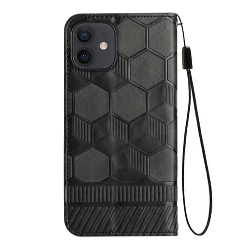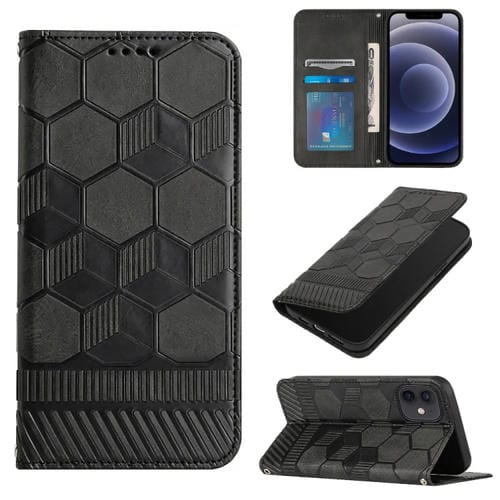 Funda de teléfono para iPhone 12 Mini con tapa de cuero magnético y textura de fútbol (Negro)