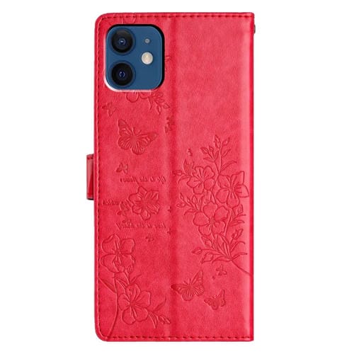 Funda para Teléfono iPhone 12 Mini Cuero Relieve Flor de Amor y Mariposa (Rojo)