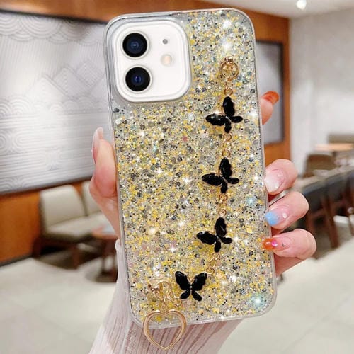 Funda para Teléfono TPU Epoxi iPhone 12 Mini Cadena Mariposa Lentejuelas (Amarillo)