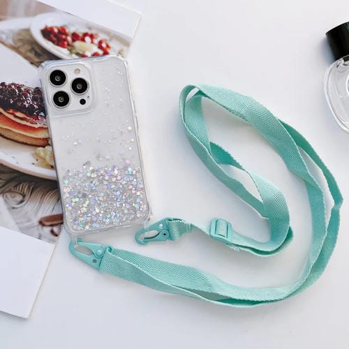 Funda para iPhone 12 Mini Lanyard Glitter Epoxy Clear Phone Case (Azul)