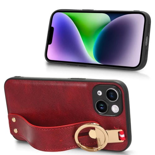 Funda Trasera para iPhone 12 Mini Muñequera de cuero (Rojo)