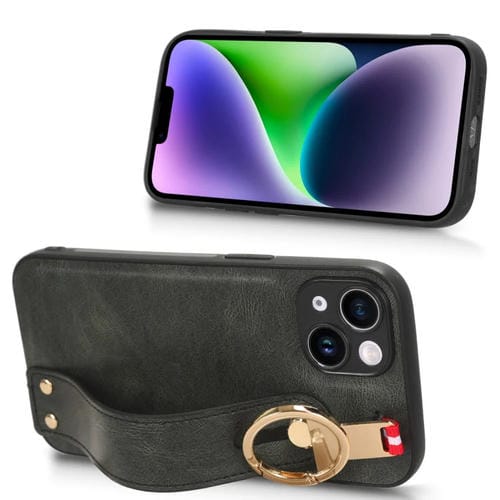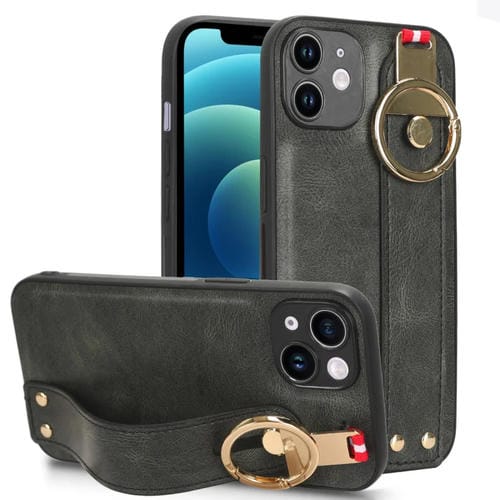 Funda Trasera Muñequera para iPhone 12 Mini de Cuero (Verde)