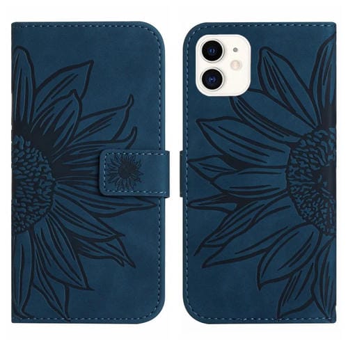 Funda para iPhone 12 Mini Skin Feel Sun Flower Pattern Flip de Cuero con Cordón (Azul Tinta)