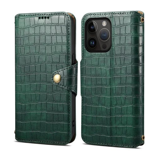 Funda para Teléfono Denior iPhone 12 Pro Cuero con Borde de Aceite y Textura de Cocodrilo (Verde)