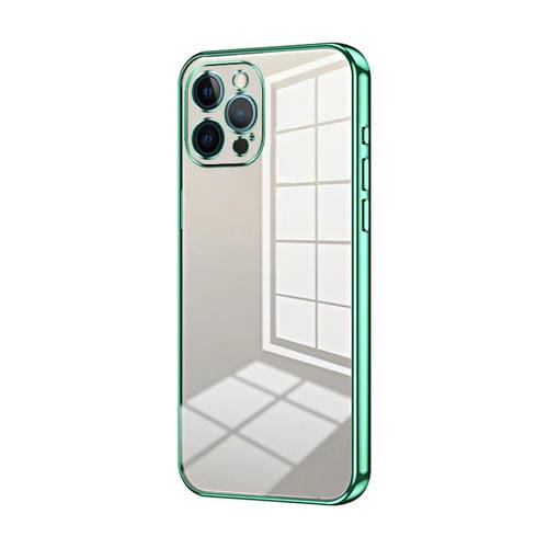 Estuche para Teléfono iPhone 12 Pro Orificio Fino Revestimiento Transparente (Verde)