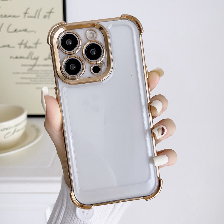 Estuche para Teléfono iPhone 12 Pro Espacial a Prueba de Golpes con Cuatro Esquinas y Galvanoplastia (Dorado)