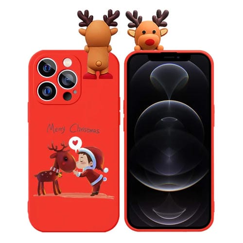 Funda de teléfono TPU Suave para iPhone 12 Pro con Muñeco en Relieve de Ciervo y Dibujo Coloreado