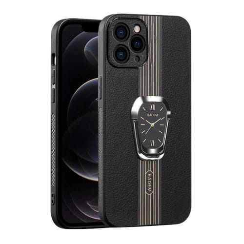Funda Magnética para iPhone 12 Pro Parte Trasera de Cuero Litchi con Soporte (Negro)