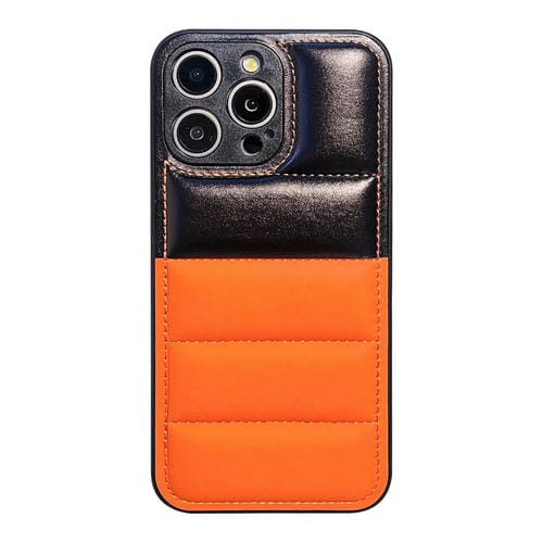 Funda para Teléfono iPhone 12 Pro Chaqueta de Plumón Bloques de Color (Negro Naranja)