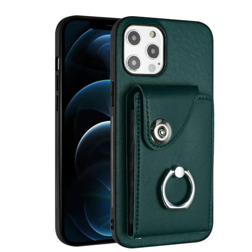Funda para Teléfono iPhone 12 Pro con Soporte para Anillo y Bolsa para Tarjeta (Verde)