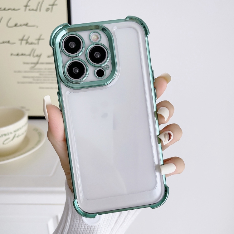 Estuche para teléfono iPhone 12 Pro Galvanoplastia a prueba de golpes de cuatro esquinas (Verde)