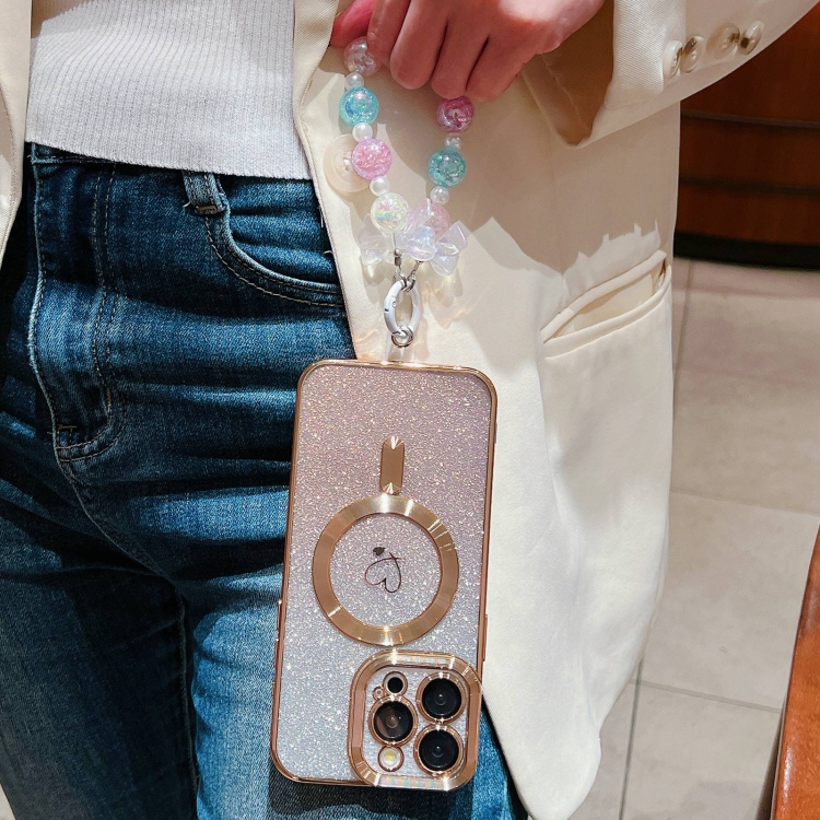 Estuche para Teléfono iPhone 12 Pro Loves Gradient Glitter Bracelets TPU Magsafe Fibra de Carbono (Dorado)