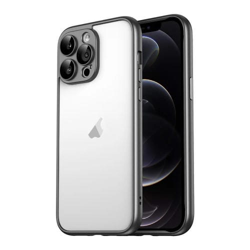 Funda para iPhone 12 Pro Macaron PC Phone Marco de Borde Puro con Película de Vidrio para Lentes (Negro)