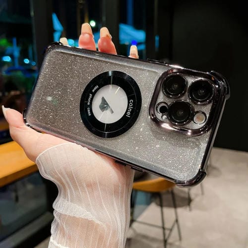 Estuche para Teléfono iPhone 12 Pro Max 6D Magsafe con Armadura Brillo Degradado y Galvanoplastia (Negro)
