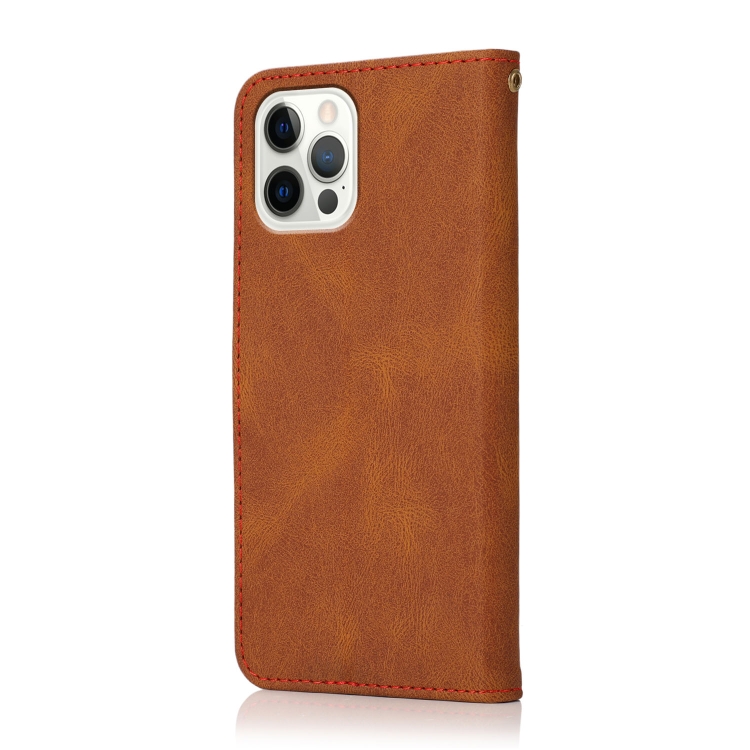 Estuche para Teléfono iPhone 12 Pro Max Cuero con Costuras de Dos Colores (Marrón Rojo)