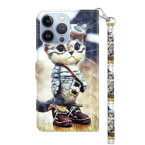 Funda de Teléfono iPhone 12 Pro Max Cuero Pintado En 3D Gato Travieso