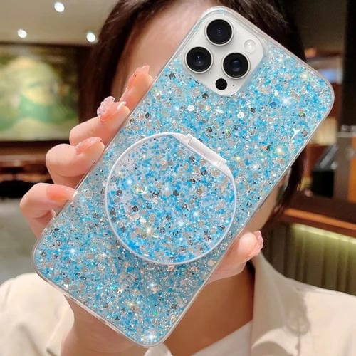 Funda para Teléfono TPU Epoxi iPhone 12 Pro Max con Espejo Redondo y Lentejuelas Estrelladas (Azul)