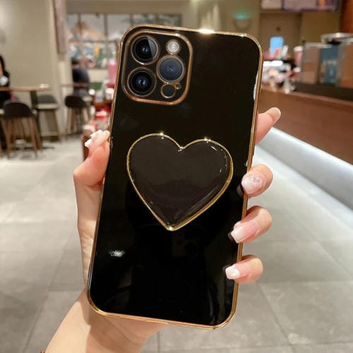 Funda para Teléfono iPhone 12 Pro Max Galvanoplastia Love Heart Holder TPU (Negro)
