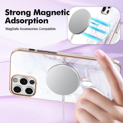 Funda para iPhone 12 Pro Max Marble Pattern Dual-Side Imd Magsafe TPU (Blanco)