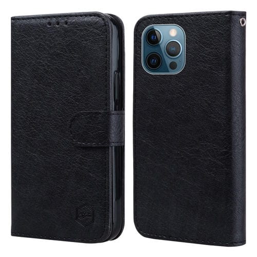 Funda para Teléfono iPhone 12 Pro Max Skin Sensación Aceite Textura de Cuero Pu + TPU (Negro)