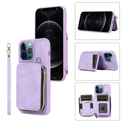 Funda para Teléfono iPhone 12 Pro Max Zipper Card Bag Contraportada (Púrpura)