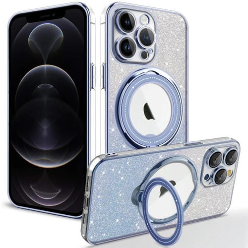 Estuche para teléfono iPhone 12 Pro Rotación Magsafe Holder TPU con Brillo Degradado (Azul Sierra)