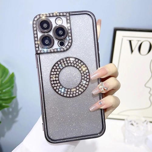 Caja de teléfono para iPhone 13 con brillo degradado de diamante electrochapado (Negro)