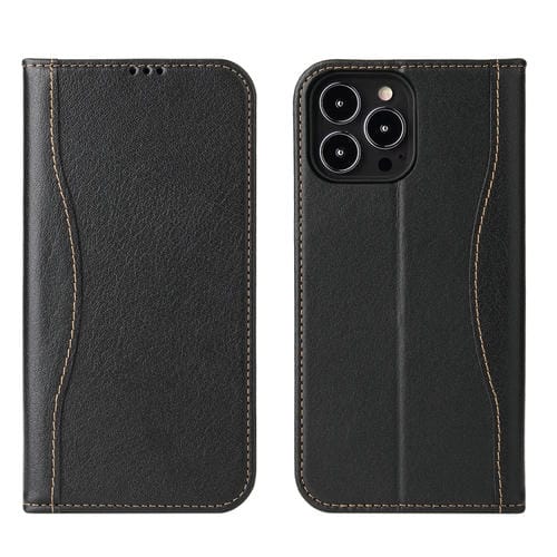 Funda para iPhone 13 Cuero Genuino con Tapa Horizontal Soporte Ranuras para Tarjetas y Billetera (Negro)