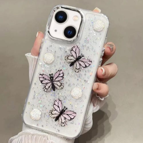 Funda para Teléfono TPU iPhone 13 Glitter 3D Butterfly (Rosa)